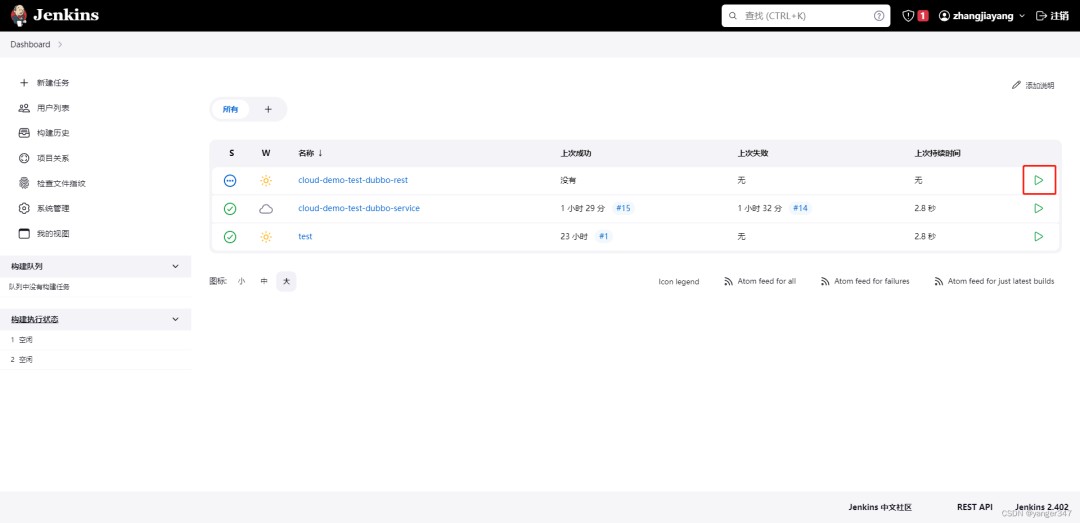 返回Jenkins 首页,选择刚刚创建的项目