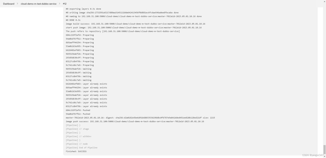 可以看到镜像已经打包好,并且已经push到registry了
