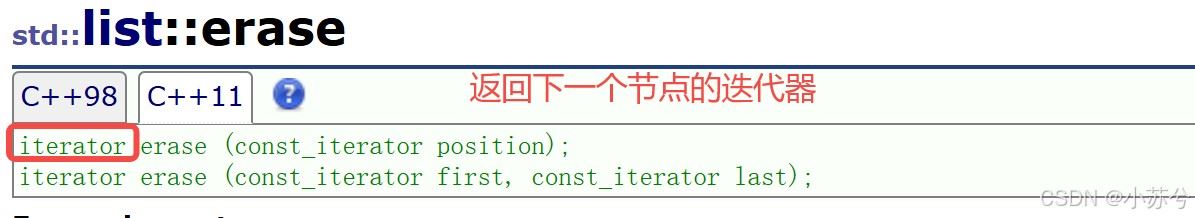 // erase()函数执行后,it所指向的节点已被删除,因此it无效,在下一次使用it时,必须先给其赋值
