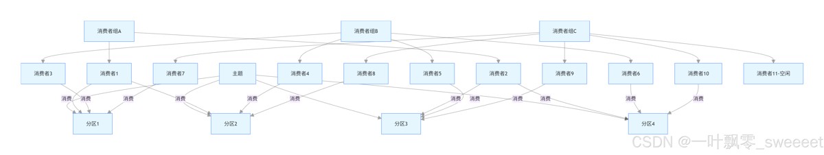 - 消费者数量不应超过分区数量,否则多余的消费者将处于空闲状态