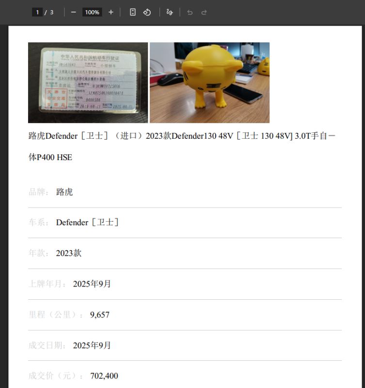 item.put("vehicleName", "路虎Defender[卫士](进口)2023款Defender130 48V[卫士 130 48V] 3.0T手自-体P400 HSE");
