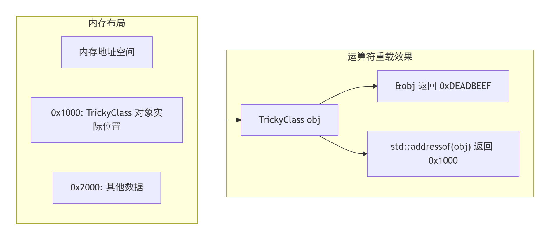 TrickyClass* addr = &obj; // 返回 0xDEADBEEF,不是真实地址!