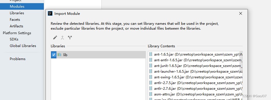 清空后,则可使用【Modules】中的指定文件位置