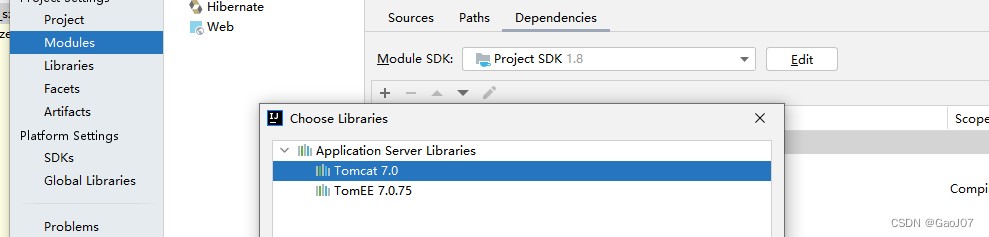 2.3 【Dependencies】,本项目这里需再次添加tomcat,点击2如图