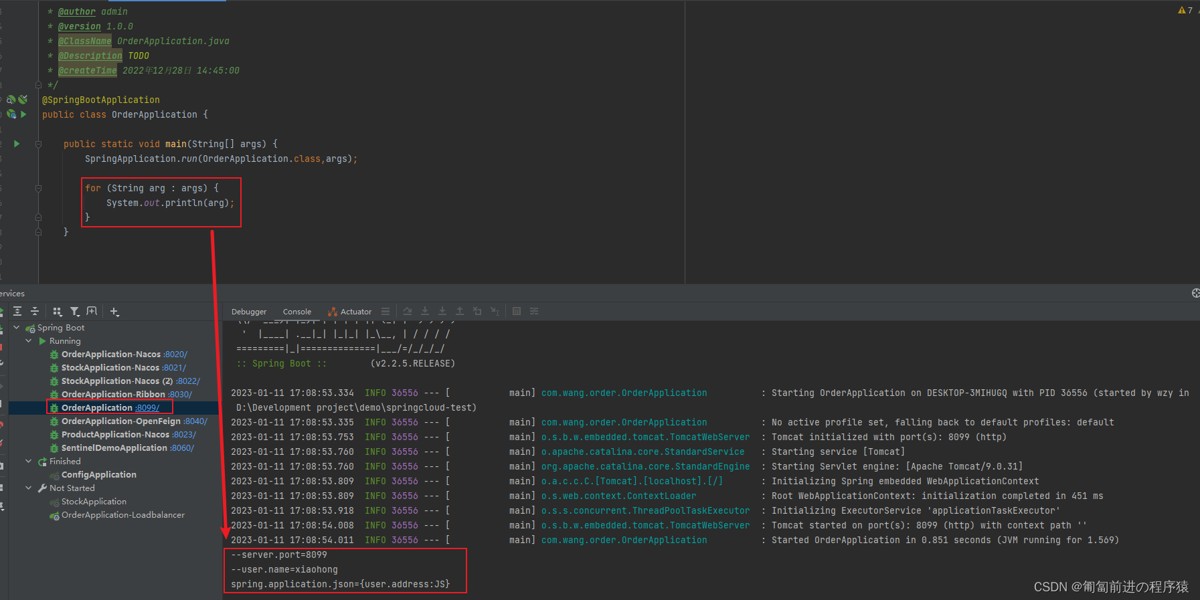 传入main方法的字符串数组args[],它通常以–开头,如–server.port=8099