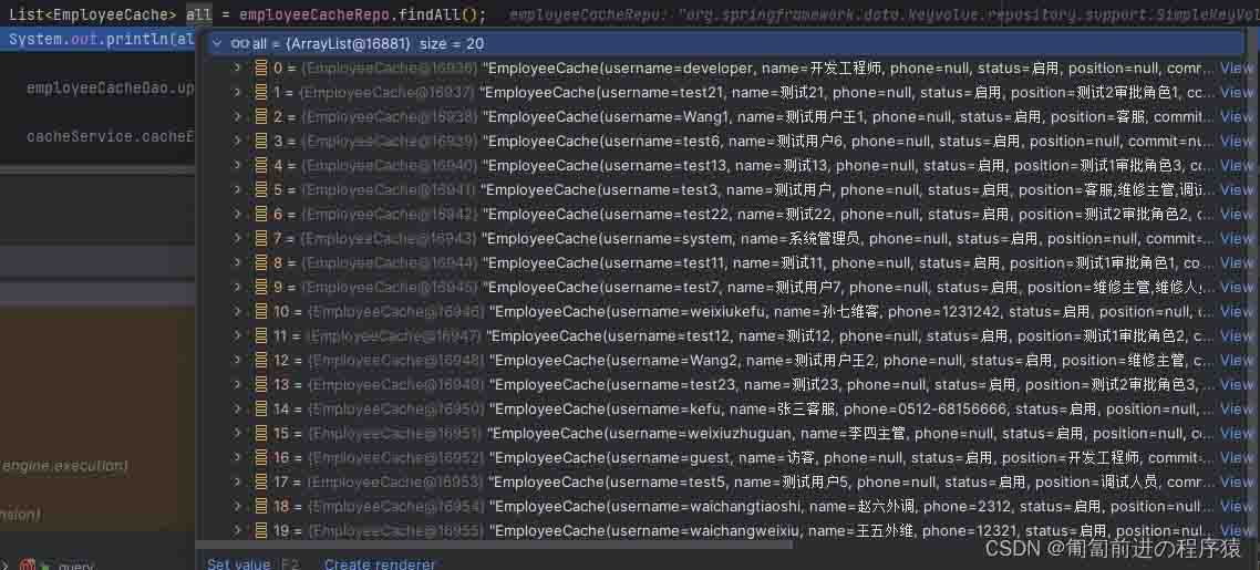 此时,就可以使用 EmployeeCacheRepo 对 Redis中的 EmployeeCache 进行添删查改操作。