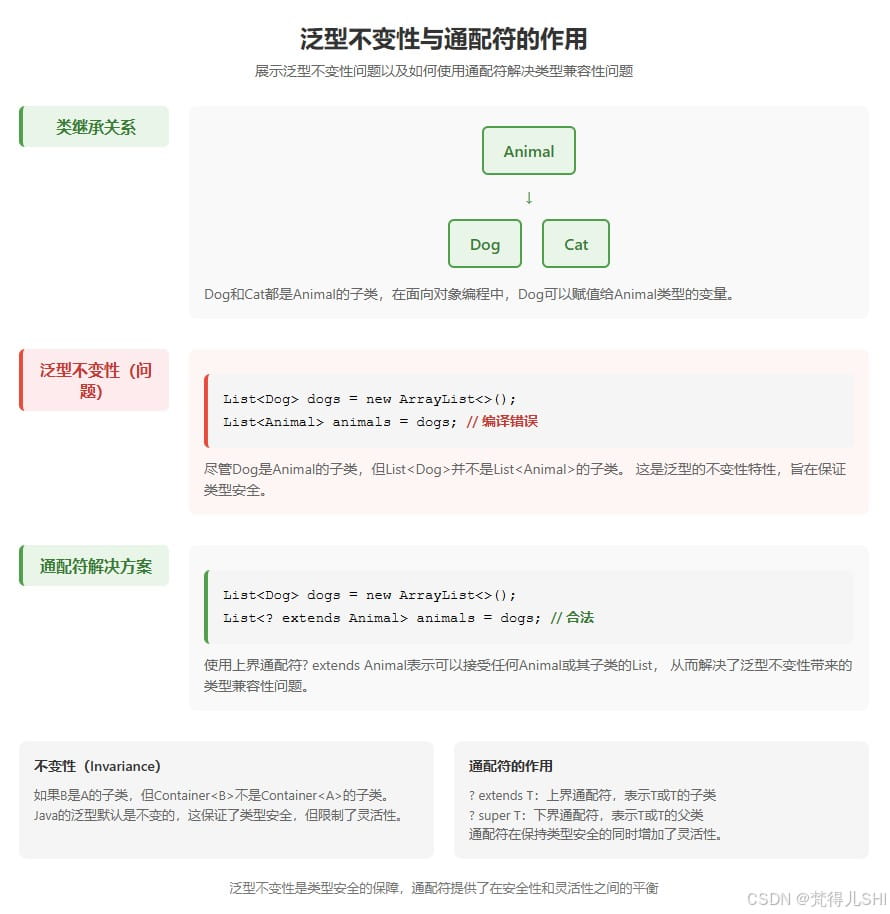 一、为什么需要通配符?—— 从泛型的 “不变性” 说起