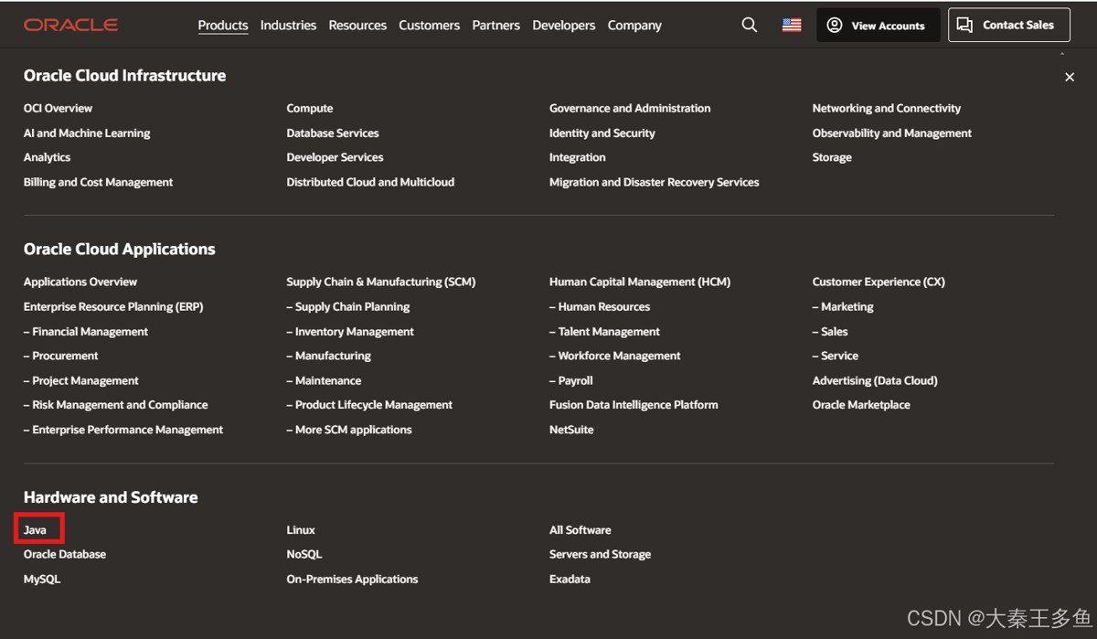 访问 Oracle 官网 ,选择Products下拉框点击Java;