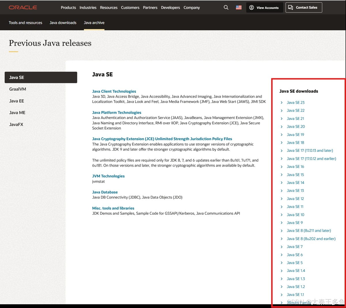 需要下载其他版本JDK的可以参考下面流程(比如JDK 17/JDK 11/JDK 8),不需要下载其他版本的跳过到 安装 JDK。