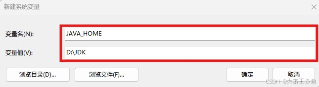 变量值:填写你的 JDK 安装路径,例如 D:\JDK(请根据实际安装路径调整)。