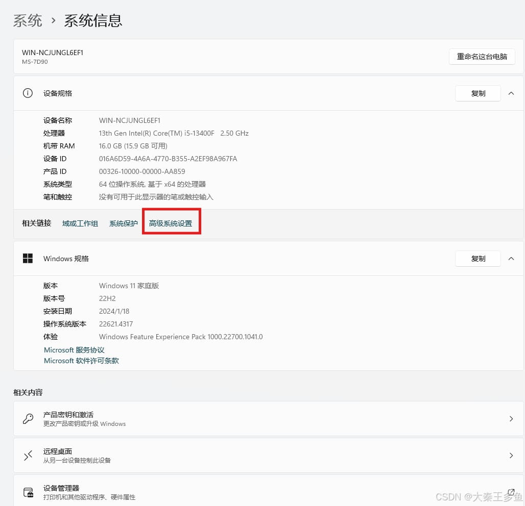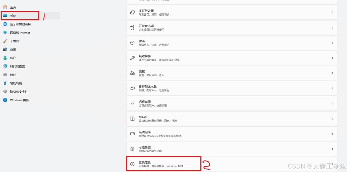 按 Win + I 快捷键将打开** “设置”** 窗口,选择 “系统信息”。