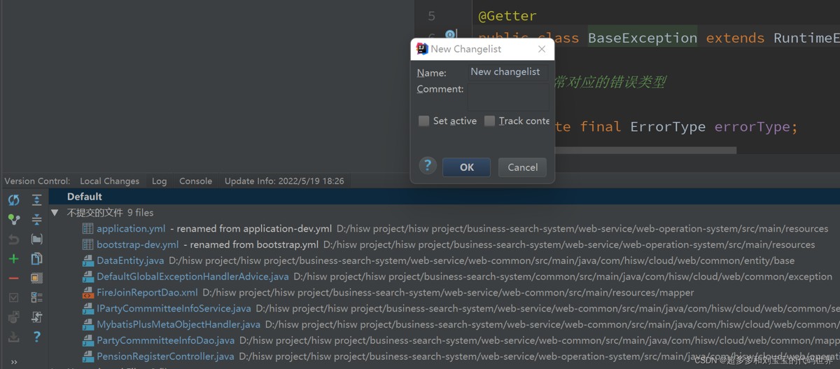 提交时的对话框是commit changes,默认情况下,指定的changelist是default。