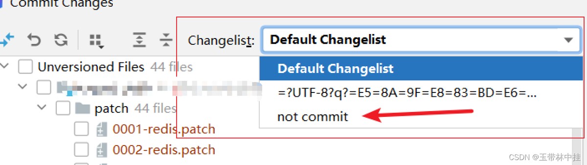 6、这样在commit的时候,默认是Default ChangeList,并不会带上其他分组的文件,如果想提交其他分组的文件,可以点击下拉框选择