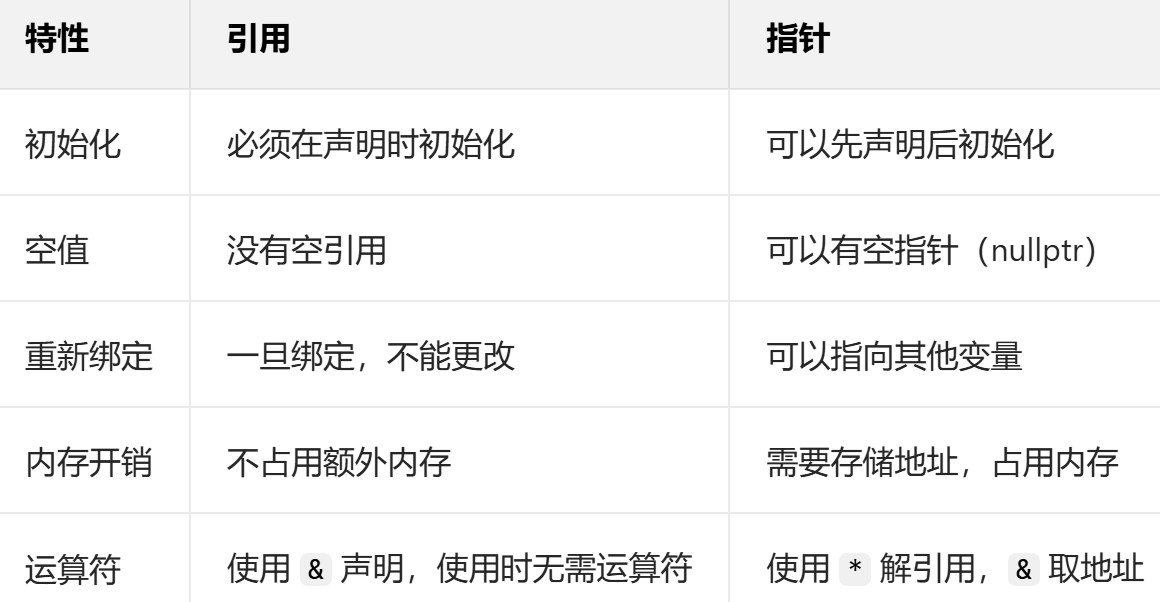 2. **必须初始化**:引用在声明时必须初始化,不能像指针一样先声明后赋值