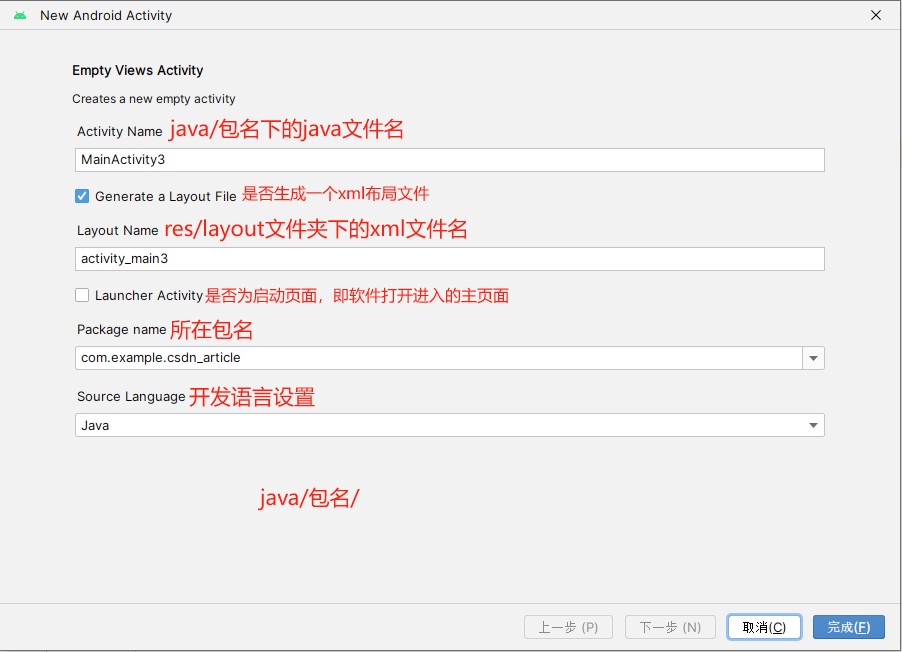 b.根据需要选择对应的模板,一般默认选择《Empty Activity》—《下一步》