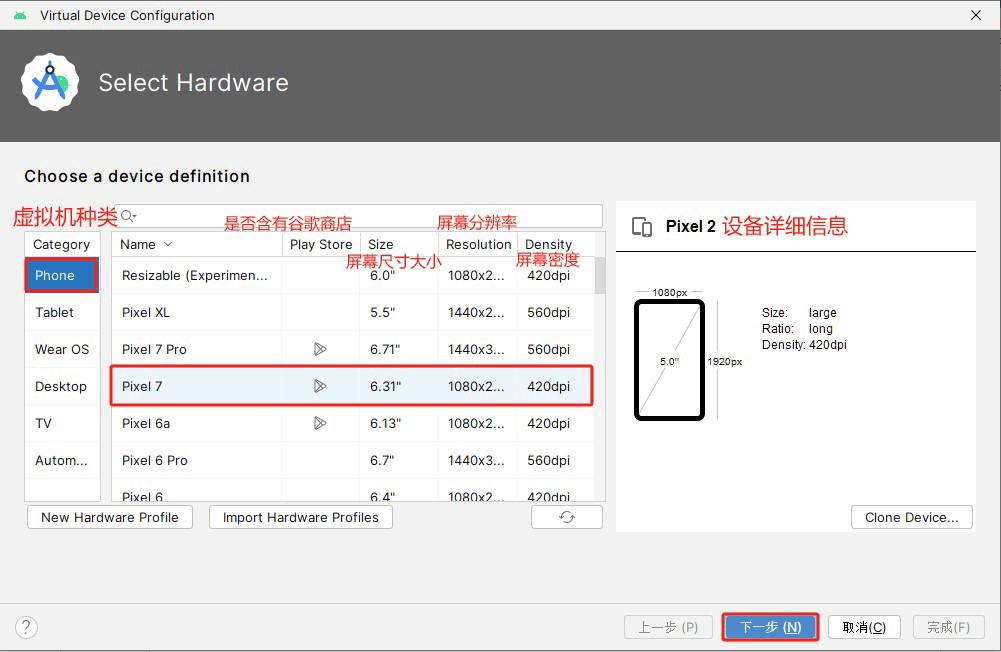 c.根据需求选择API版本(小于创建项目设置的API版本将运行不了该项目)