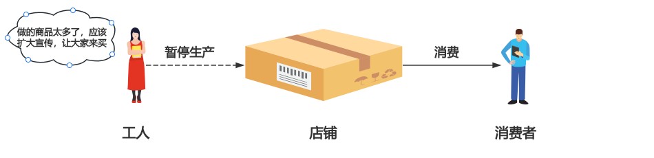 - 生产者:做的商品太多了,应该扩大宣传,让大家来买。