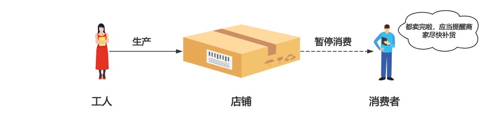 以现实生活为例。消费者和生产者就像两个线程,原本做着各自的事情,厂家管自己生产,消费者管自己买,一般情况下彼此互不影响。900 240