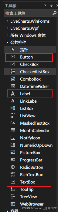 窗体三拖动两个Label和TextBox,再拖动一个Button组件。