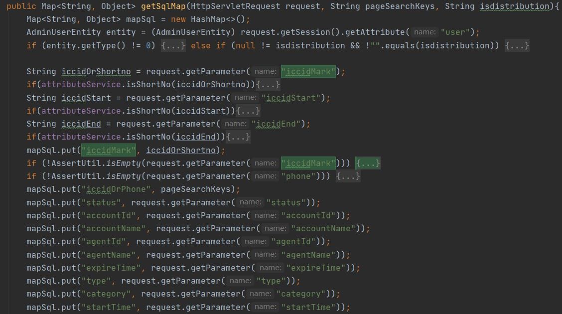 观察可知,他们都调用的getSqlMap方法,该方法具体作用就是从HttpServletRequest中获取相关条件参数,并放到Map中,供后续查询代码使用,如下: