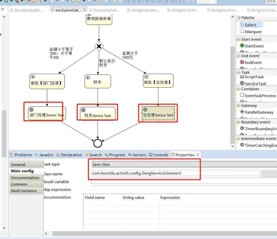 <serviceTask id="servicetask1" name="总经理Service Task" activiti:class="com.bootdo.activiti.config.ZengServiceListener3"></serviceTask>