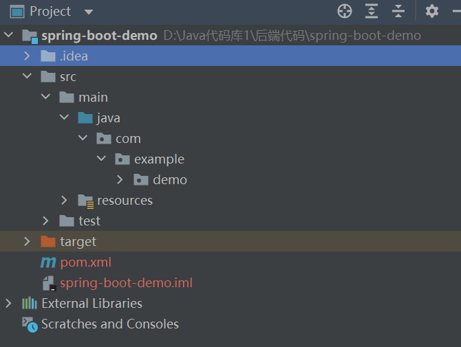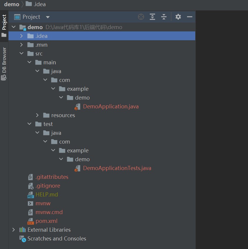 │ │ │ └── DemoApplication.java // 项目入口类,即启动类