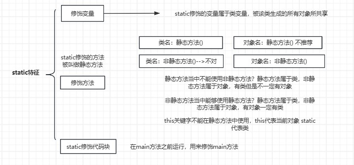 - 非静态方法中可以调用静态方法(对象存在时,类一定已加载);