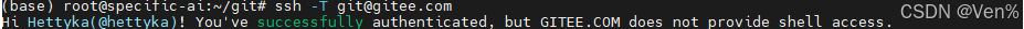 chmod 600 ~/.ssh/config这样每次打开新的会话的时候,密钥还是会存在,可以直接拉取git仓库上的代码