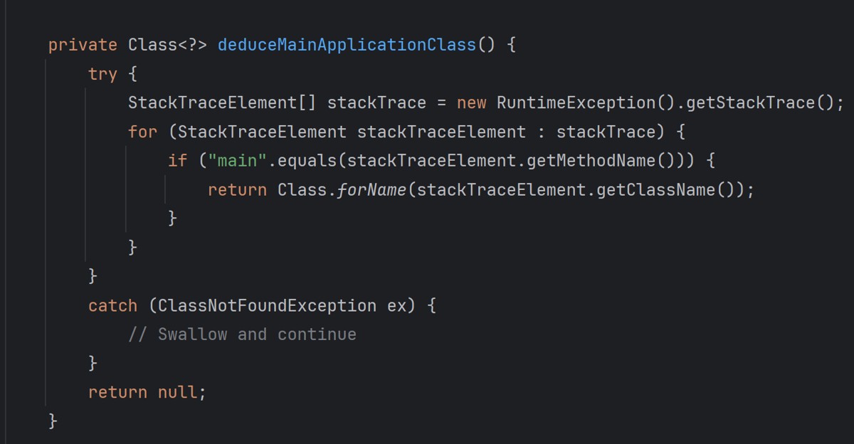 this.bootstrapRegistryInitializers = new ArrayList<>( getSpringFactoriesInstances(BootstrapRegistryInitializer.class)); setInitializers((Collection) getSpringFactoriesInstances(ApplicationContextInitializer.class)); setListeners((Collection) getSpringFactoriesInstances(ApplicationListener.class)); this.mainApplicationClass = deduceMainApplicationClass();