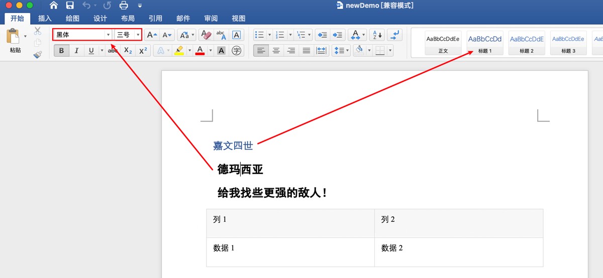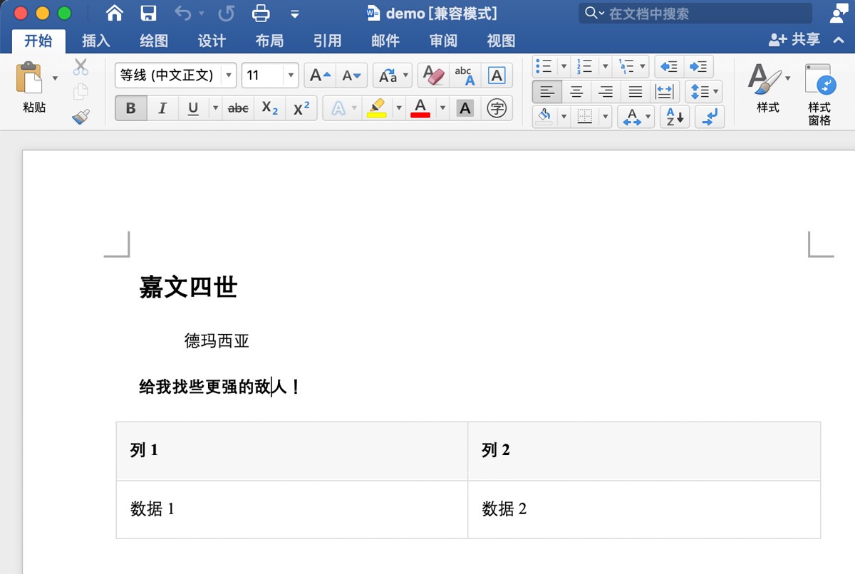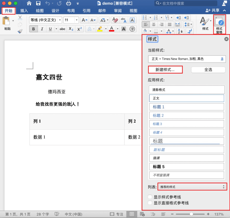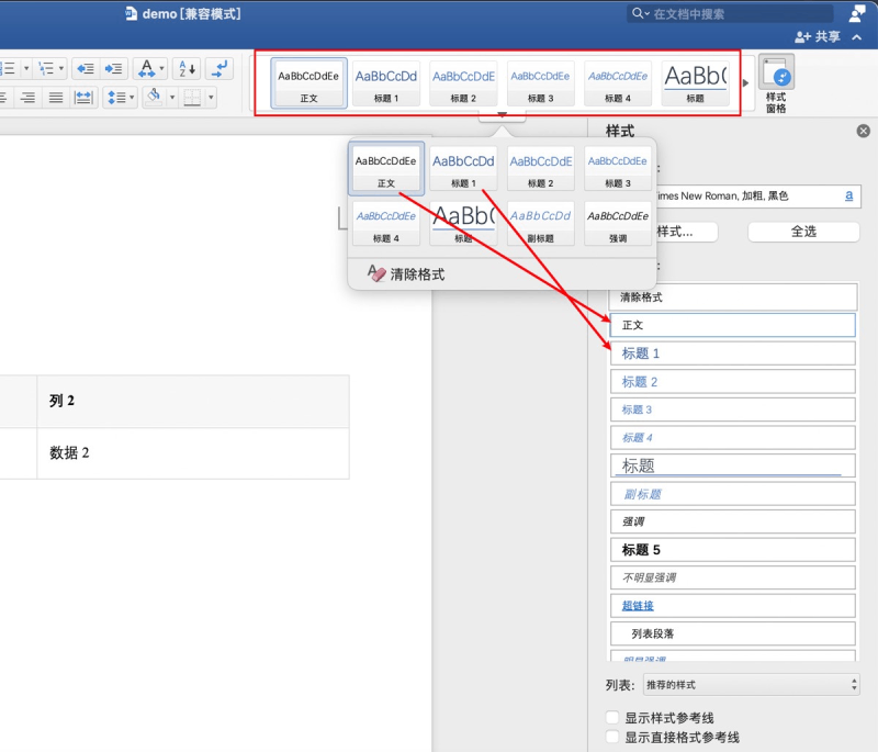 我们可以先看一下word的内置样式, 我这里使用的是mac office,windows 和 wps 有些许差异