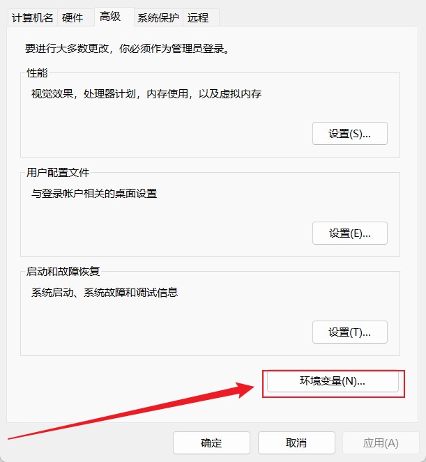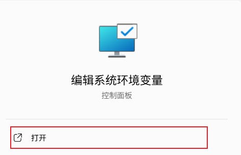 2、然后,按键盘上的Windows🪟键,搜索编辑系统环境变量->点击“打开”->点击“环境变量”。