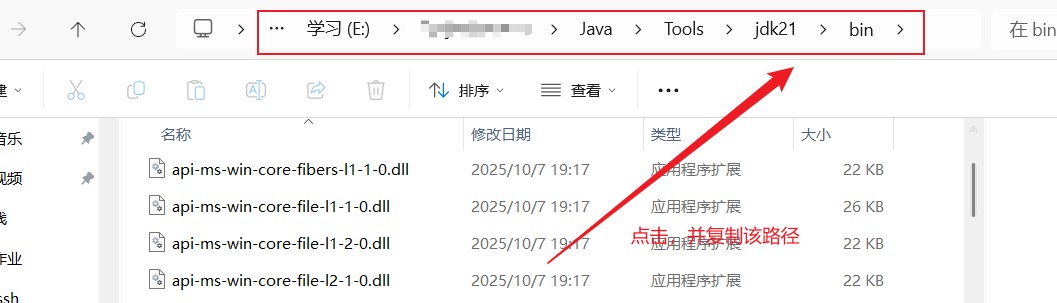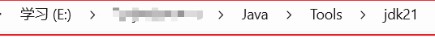 1.找到的Java21的路径,只需复制到jdk21这个文件夹,路径中不含有bin。