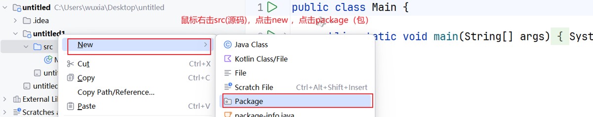 因为在空项目的时候不能直接创建包,那你在创建项目的时候就不能创建空项目(Empty Project),而是选择Java,然后从src下面创建包,就可以了