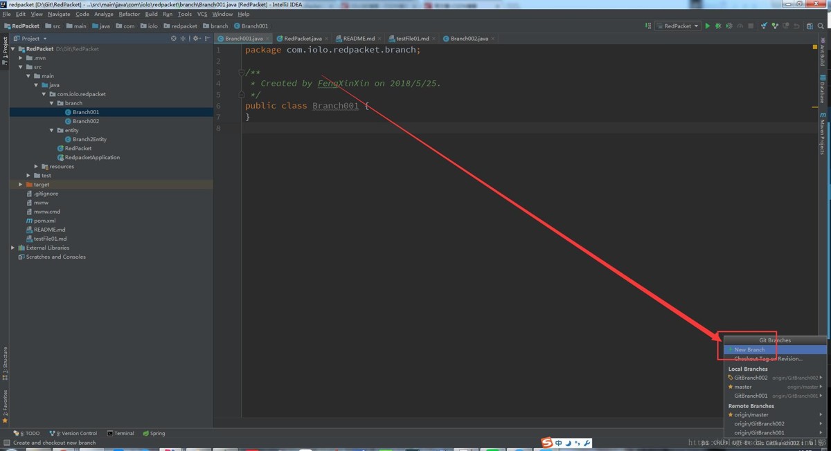 这样一个分支就创建完成,然后merge分支,可以多建立几个分支,分别创建分支各自的文件,进行提交,然后开始merge的操作。