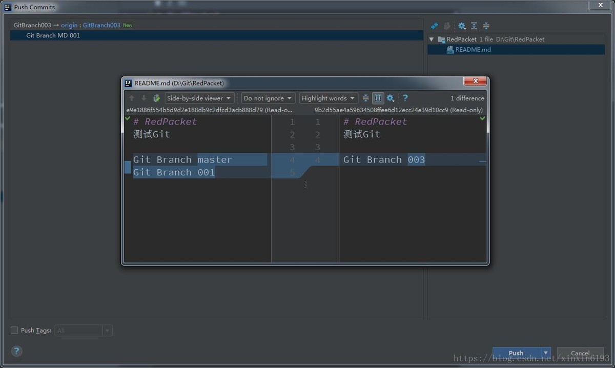 然后进行push的时候就会把 003的提交的记录拉取过来
