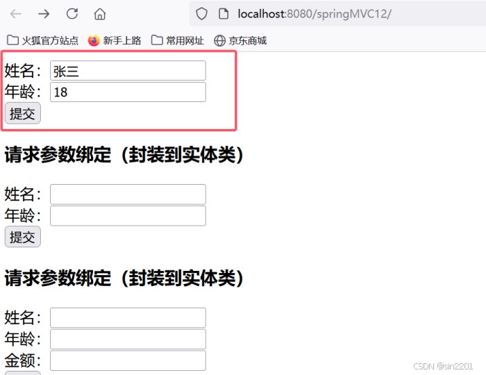 <h3>请求参数绑定(封装到实体类,存在map集合)</h3>