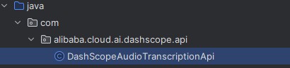 at com.alibaba.cloud.ai.dashscope.api.DashScopeAudioTranscriptionApi.getOutcome(DashScopeAudioTranscriptionApi.java:138)