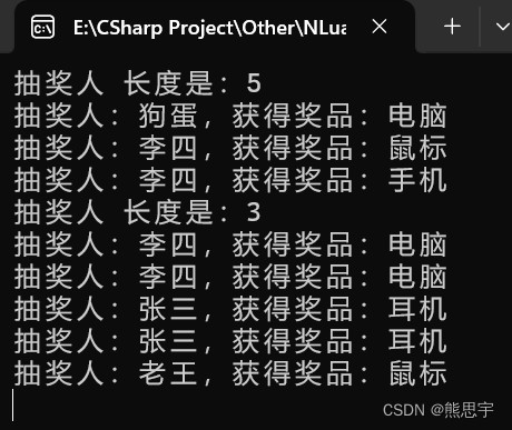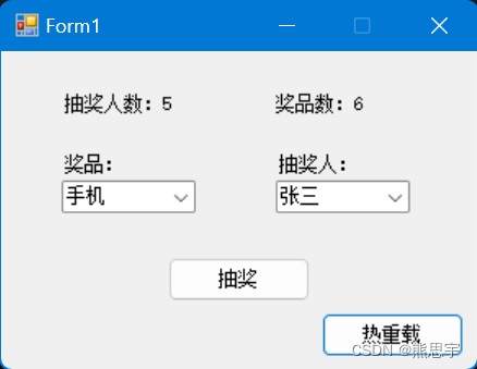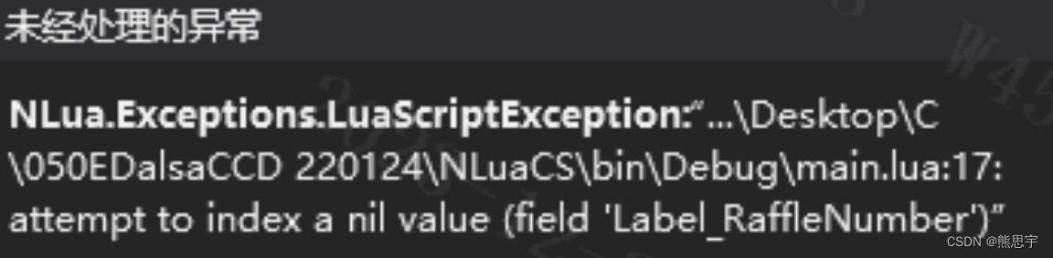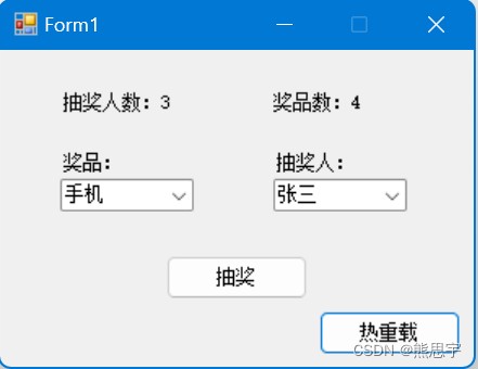 end注意上面 lua 脚本中的 Label_RaffleNumber,Label_PrizesNum,ComboBox_Prize 等关键字,这都是 winform 的控件,如果你用的不是我的源码,winform 控件名和 lua 脚本中的也不一致,那么运行就会报错: