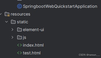 springboot项目启动后,默认会到静态资源 resources->static 目录下查找index.html页面