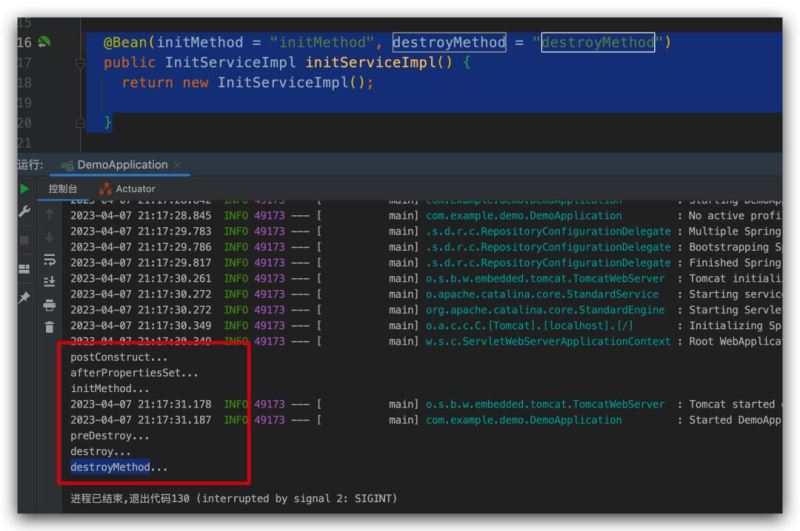 - 在 InitServiceImpl 中增加一个自定义销毁方法,然后在配置类中增加 Bean 的 destoryMethod;