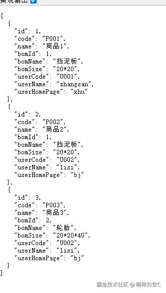 CREATE TABLE `user` ( `id` int(11) NOT NULL, `code` varchar(255) DEFAULT NULL, `name` varchar(255) DEFAULT NULL, `home_page` varchar(255) DEFAULT NULL, PRIMARY KEY (`id`) ) ENGINE=InnoDB DEFAULT CHARSET=utf8mb4 COLLATE=utf8mb4_general_ci; CREATE TABLE `bom` ( `id` int(11) NOT NULL, `code` varchar(255) DEFAULT NULL, `name` varchar(255) DEFAULT NULL, `size` varchar(255) DEFAULT NULL, PRIMARY KEY (`id`) ) ENGINE=InnoDB DEFAULT CHARSET=utf8mb4 COLLATE=utf8mb4_general_ci; CREATE TABLE `product` ( `id` int(11) NOT NULL, `code` varchar(255) DEFAULT NULL, `name` varchar(255) DEFAULT NULL, `bom_id` int(11) DEFAULT NULL, `user_code` varchar(255) DEFAULT NULL, PRIMARY KEY (`id`) ) ENGINE=InnoDB DEFAULT CHARSET=utf8mb4 COLLATE=utf8mb4_general_ci;