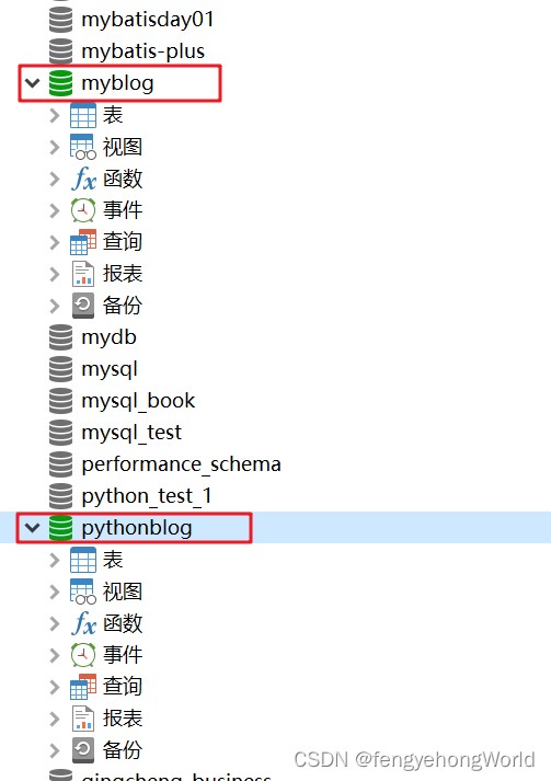 同时连接了Mysql中的两个数据库,myblog和pythonblog