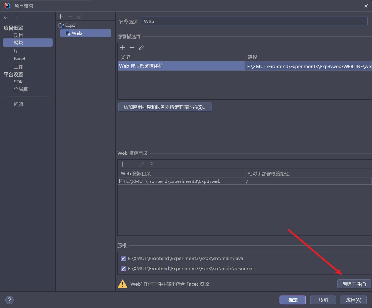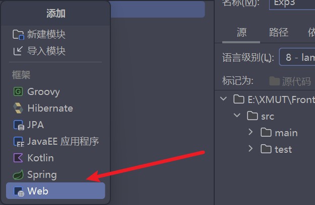 在点击 项目设置 -> 模块 右键右边模块名称 -> 添加 -> Web。