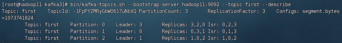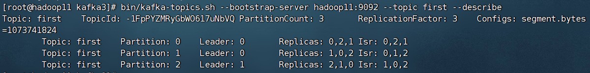 bin/kafka-topics.sh --bootstrap-server bigdata01:9092 --topic first --describe