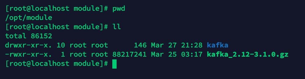 将下载好的安装包上传至每台服务器的/opt/module/目录下后解压重命名为kafka。