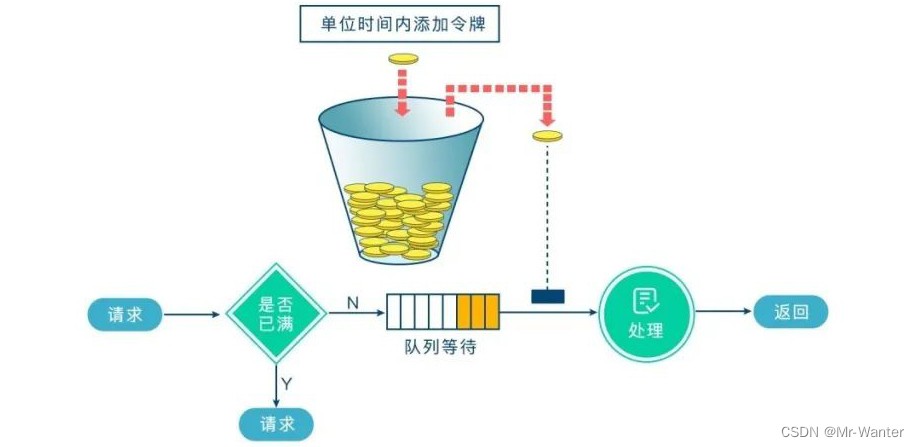 原理:请求首先进入一个队列,队列根据系统的处理能力和预设的规则控制请求的进入和退出。