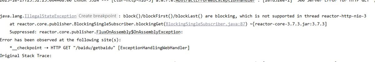 因为block是阻塞操作,所以不能在webflux框架中阻塞任务结果,因为reactor-netty属于异步非阻塞框架。在异步非阻塞中的线程中阻塞结果会报错。