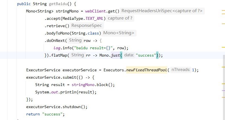 在Java中,特别是在使用Spring框架时,我们经常需要异步执行代码以避免阻塞主线程。Spring 5引入了Project Reactor,它提供了Mono和Flux等反应式类型,使得编写非阻塞代码变得非常方便。