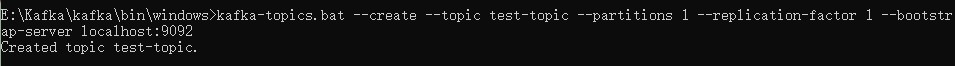 #创建一个名为 test-topic 的主题: E:\Kafka\kafka\bin\windows>kafka-topics.bat --create --topic test-topic --partitions 1 --replication-factor 1 --bootstrap-server localhost:9092