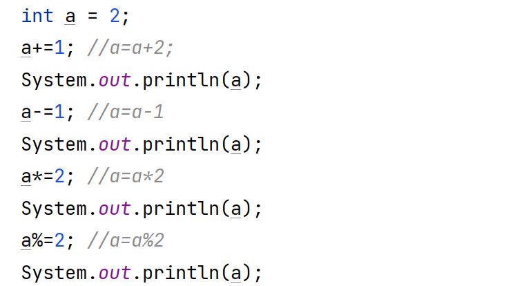 该种类型运算符操作完成后,会将操作的结果赋值给左操作数